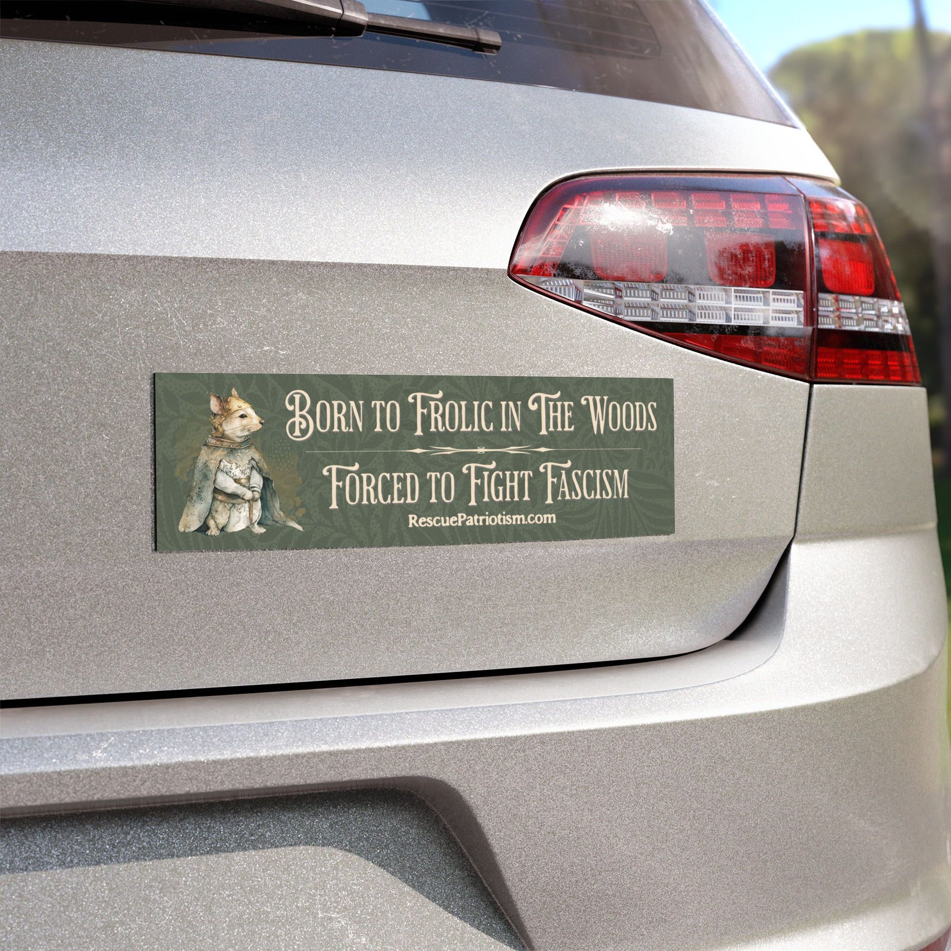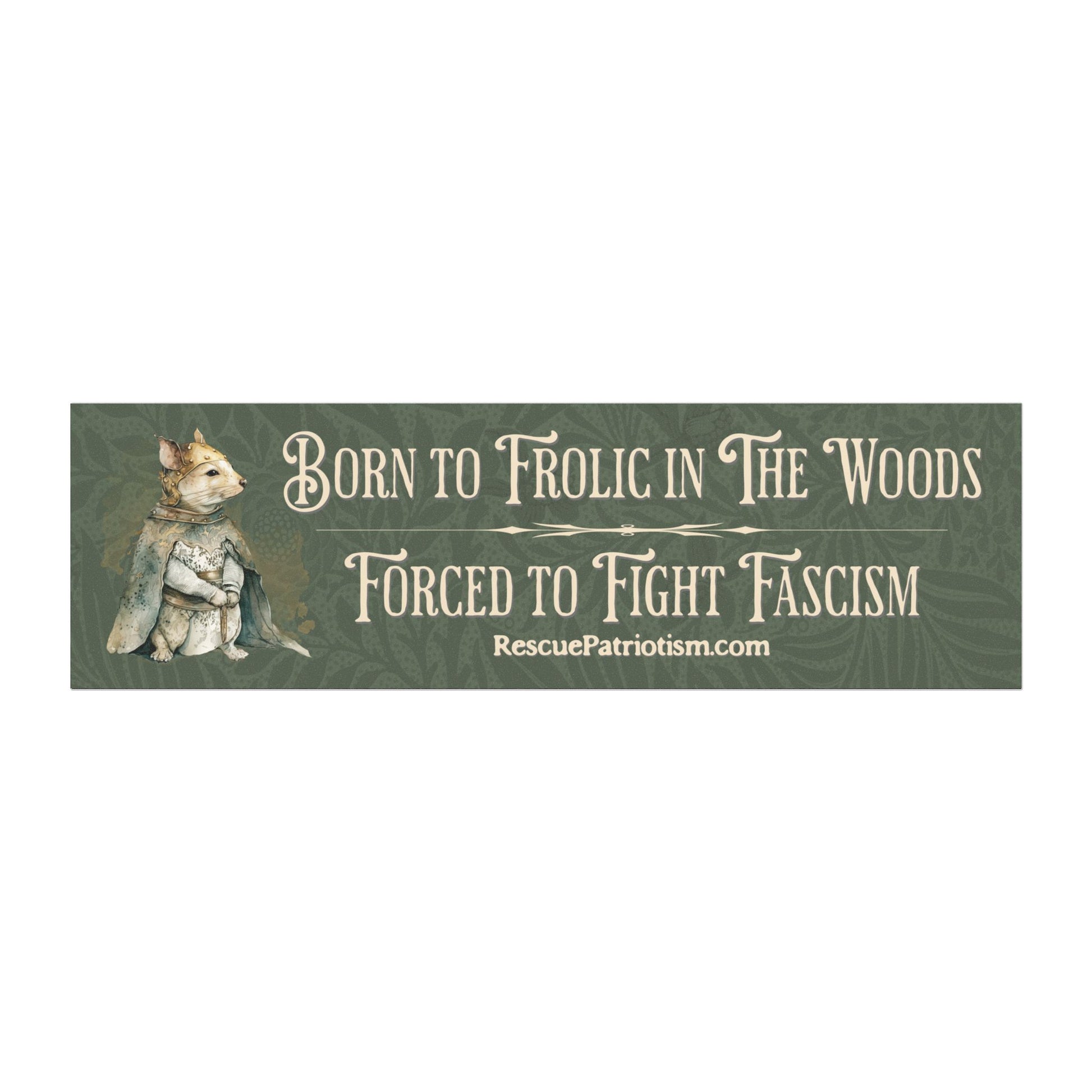 "Born to Frolic in The Woods Forced to Fight Fascism" 10"x3" Bumper Magnet