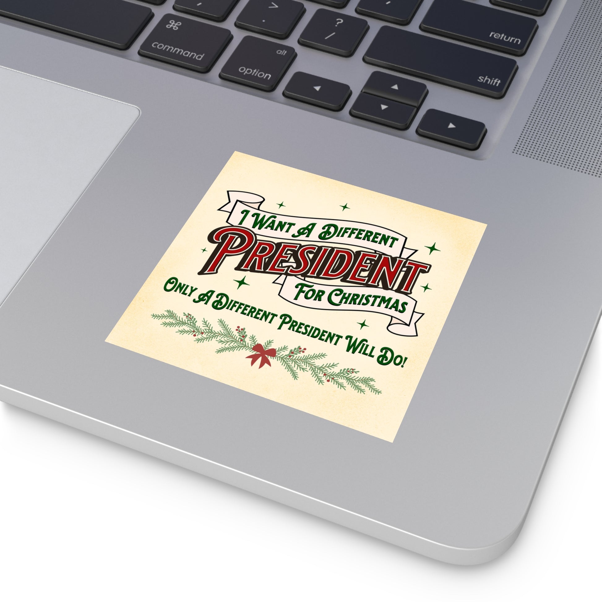 "I Want A Different President For Christmas" 3.5" or 5" Square Vinyl Sticker