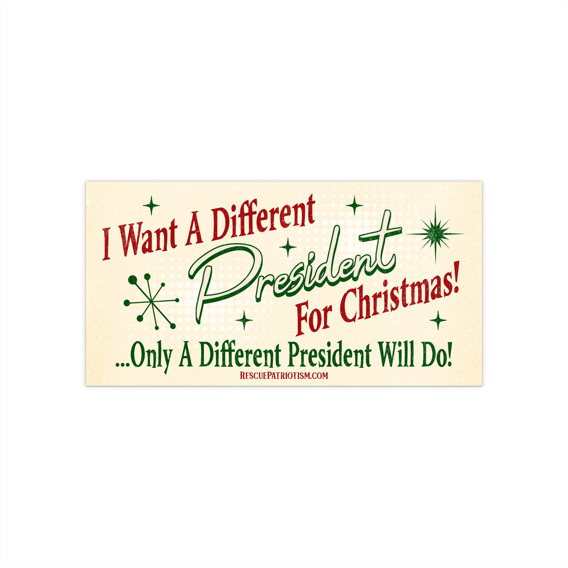 "I Want A Different President For Christmas" 50's Style 7.5"x3.75" Bumper Sticker