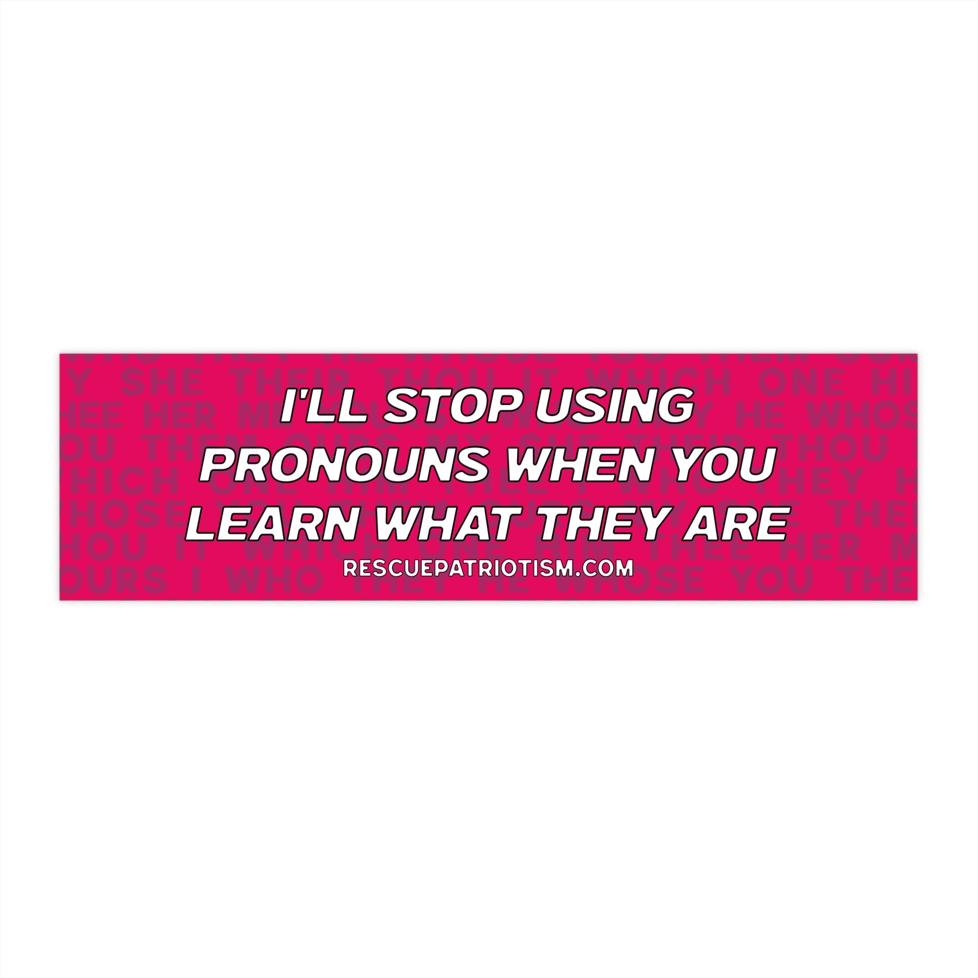 "I'll Stop Using Pronouns When You Learn What They Are" 11"x3" Bumper Sticker
