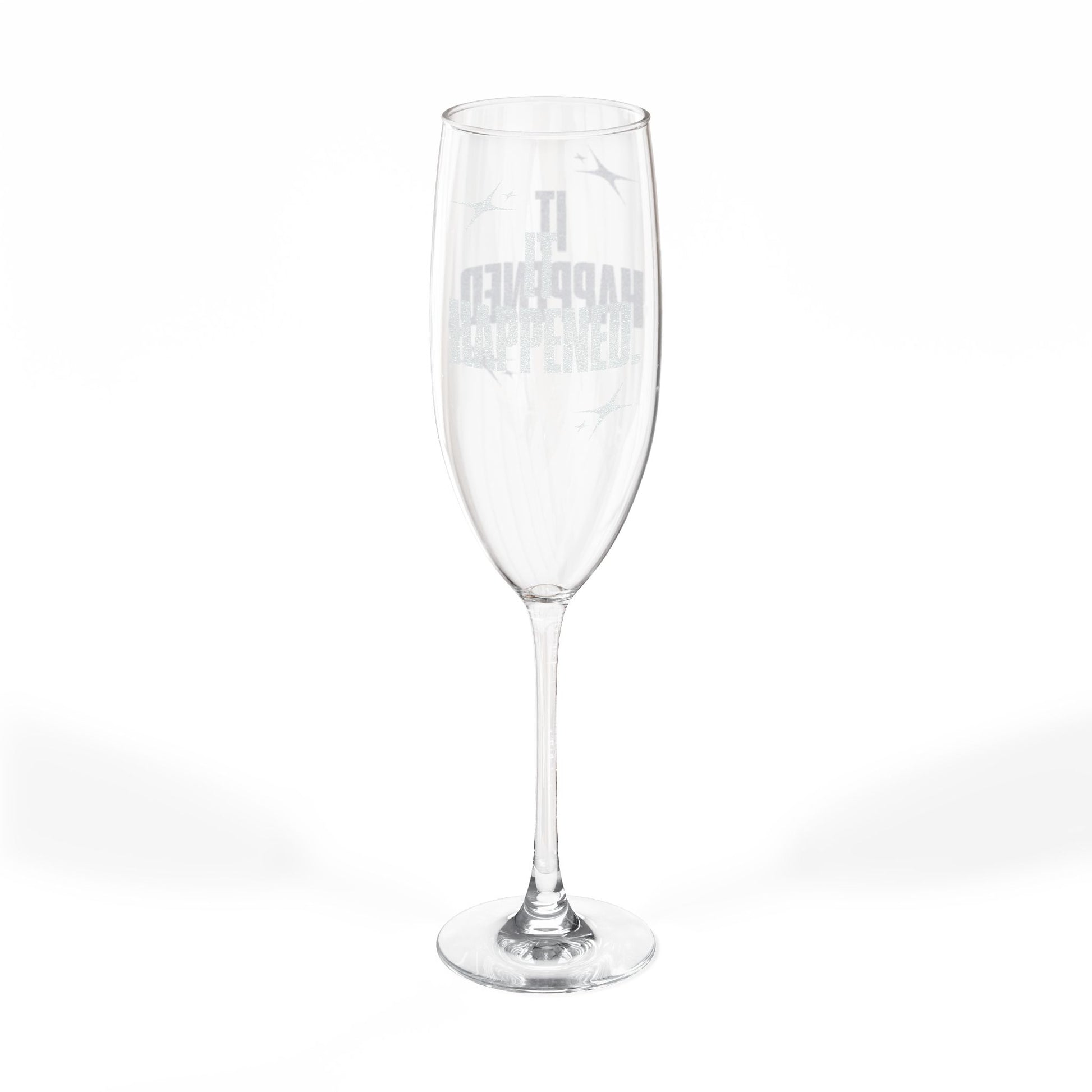 "It Happened." Engraved Champagne Glass, 8oz (INCLUDES ONE GLASS ONLY)